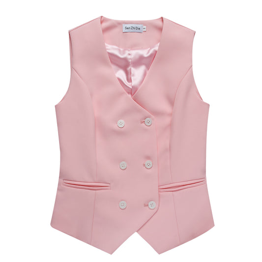 Ensemble Élégant Femme - Veste, Gilet & Pantalon Rose Poudré