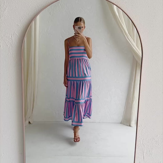 Robe Longue d’Été Rayée – Chic & Dos Nu